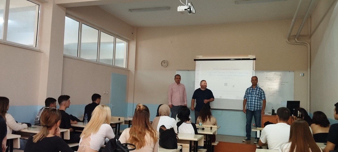 Görsel İşitsel-Teknikler ve Medya Yapımcılığı Bölümü oryantasyon programı 22.09.2025 tarihinde Bölüm akademisyenleri Dr. Öğr. Üyesi Cem SÖKMEN, Dr. Öğr. Üyesi Kürşad ERKAL ve Öğr. Gör. Yusuf ASLAN tarafından gerçekleştirilmiştir. Basım ve Yayım Teknolojileri programına kayıt olan öğrencilerin katıldığı etkinlikte üniversite, myo, bölümdeki akademik işleyiş ve sosyal imkanlar hakkında bilgiler içeren bir sunum yapılmıştır. Akabinde bölüm hocaları öğrencilerimizden gelen soruları yanıtlamıştır.
