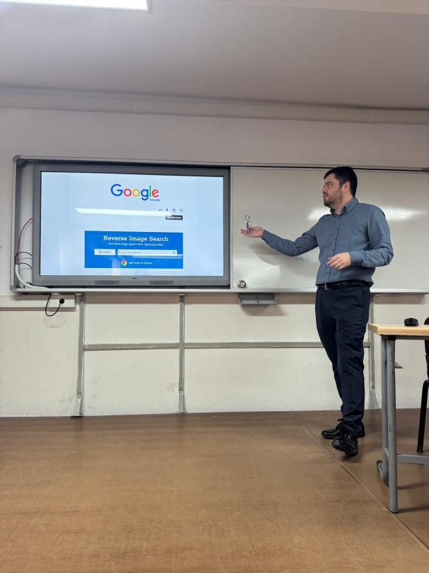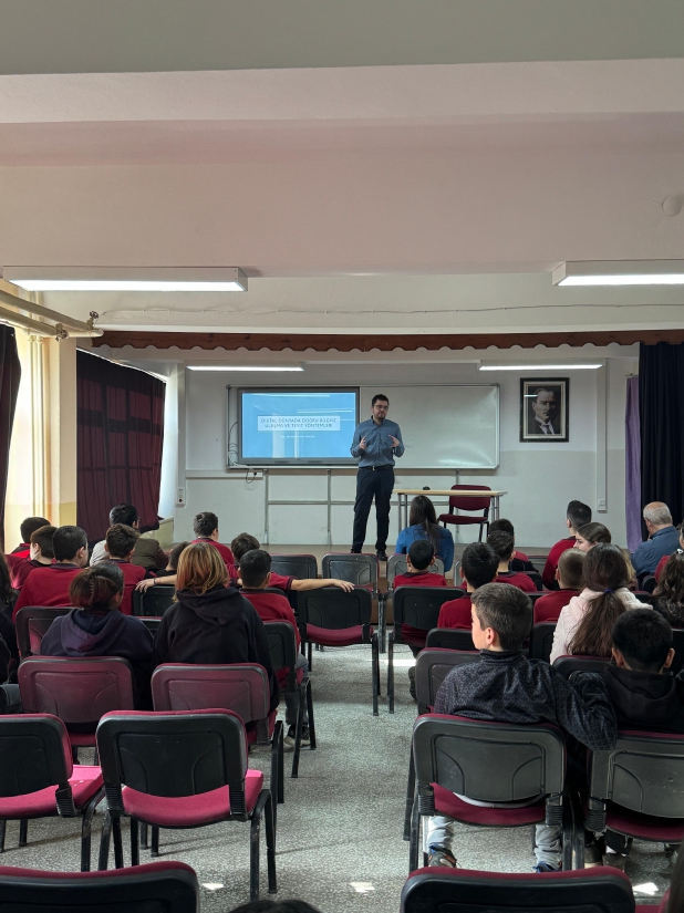 Toplumla ilişkiler çalışmaları kapsamında Görsel-İşitsel Teknikler ve Medya Yapımcılığı Bölüm Başkanı Doç. Dr. Mehmet Fatih ÇÖMLEKÇİ 27 Kasım 2025 tarihinde Kavaklı Şehit Varol Çalışkan Ortaokulunda öğrencilere yönelik “Dijital Dünyada Doğru Bilgiye Ulaşma ve Teyit Yöntemleri” başlıklı bir seminer gerçekleştirdi.